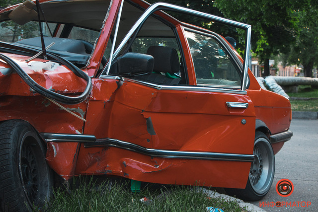 В субботу, 16 мая, на перекрестке улиц Владимира Антоновича и Философской столкнулись BMW и Volkswagen. Два человека пострадали.
