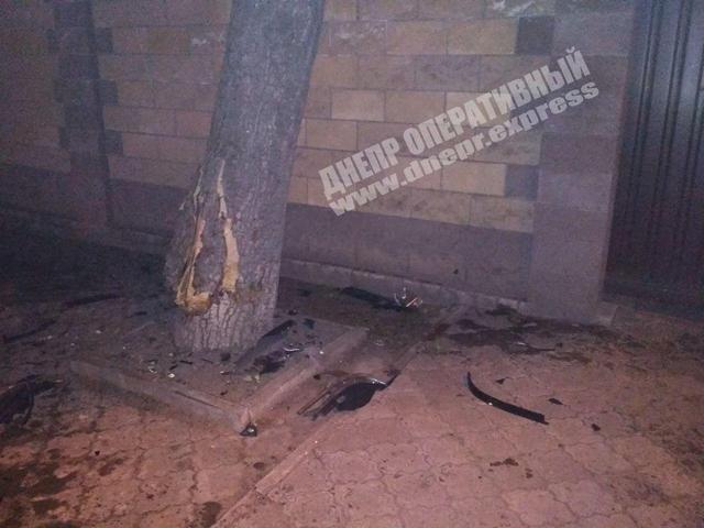 В Днепре легковой автомобиль Chery Amulet врезался в дерево и в забор частного домовладения - водитель предпочел скрыться на машине с места ДТП.