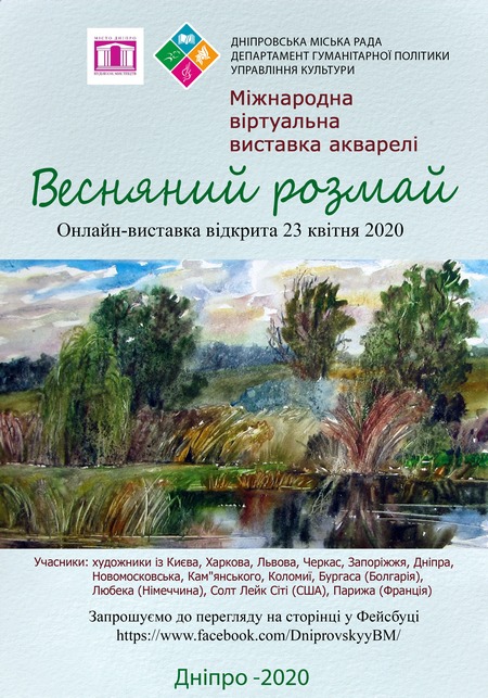 У Дніпрі відкрито віртуальну виставку акварелі «Весняний розмай». На ній представлені роботи художників з різних міст України, а також Бургаса (Болгарія), Любека (Німеччина), Солт-Лейк-Сіті (США) та Парижа (Франція).