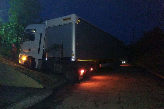 20-го мая в 03:25 в Службу спасения «101» поступило сообщение о том, что в Каменском водитель грузовика застрял на проезжей части дороги и перекрыл движение транспорта в одном направлении.