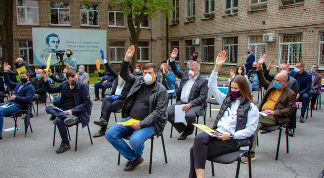 20 мая прошла 57-я очередная сессия Днепровской городского совета VII созыва. Заседание уже в третий раз проходит на свежем воздухе – на парковке во дворе горсовета, куда депутатам выносят стульчики, а для мэра и секретаря выносят стол и трибуну для выступлений. Сегодня на уличную сессию пришли 46 депутатов. На повестке дня - финансово-бюджетные вопросы, изменения в ряд муниципальных программ, утверждение нового устава территориальной общины города, нормативной денежной оценки земель, продления действия сниженной ставки единого налога для предпринимателей.