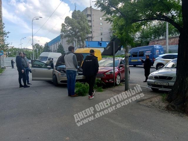 Перепутал педали: в Днепре Ford врезался в дорожный знак и припаркованный Volkswagen
