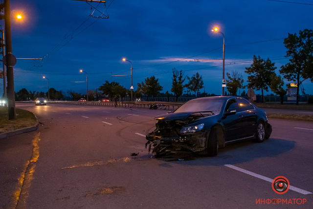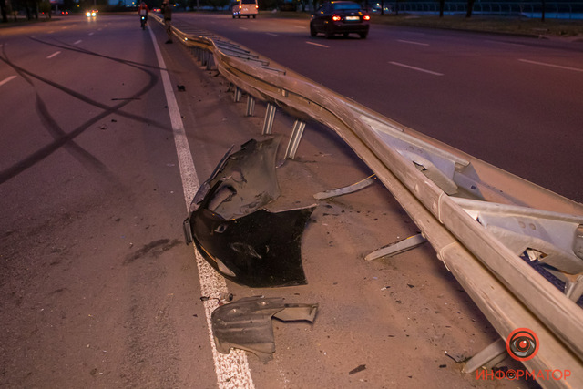 В понедельник, 25 мая в Днепре на Набережной Заводской случилось ДТП с участием Honda — автомобиль въехал в дорожное ограждение. Удар был такой силы, что машину развернуло. Пострадавших нет. По словам водителя, причиной аварии стала поломка транспортного средства.
