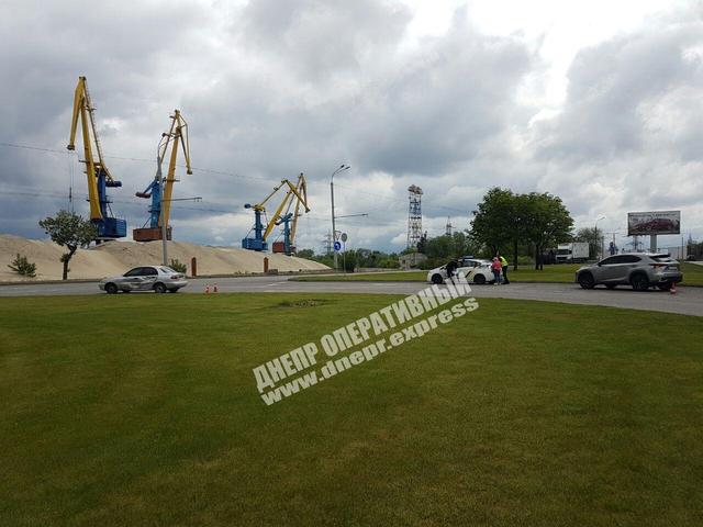 В Днепре на съезде с Кайдакского моста произошло ДТП. Водитель Daewoo совершал маневр и протаранил Lexus.
