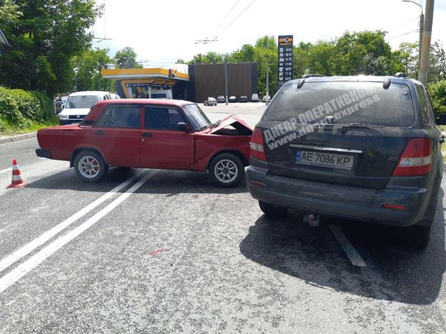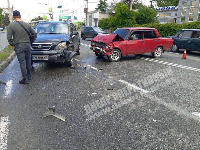 В Днепре на улице Марии Лисиченко произошло ДТП с участием легкового автомобиля ВАЗ-2107 и внедорожника KIA Sorento.