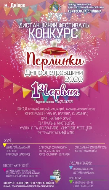 Несмотря на карантин, на областной конкурс «Перлинки Дніпропетровщини 2020» поступило аж 738 заявок от различных объединенных общин. Из них в финал вышло 38 номеров.
