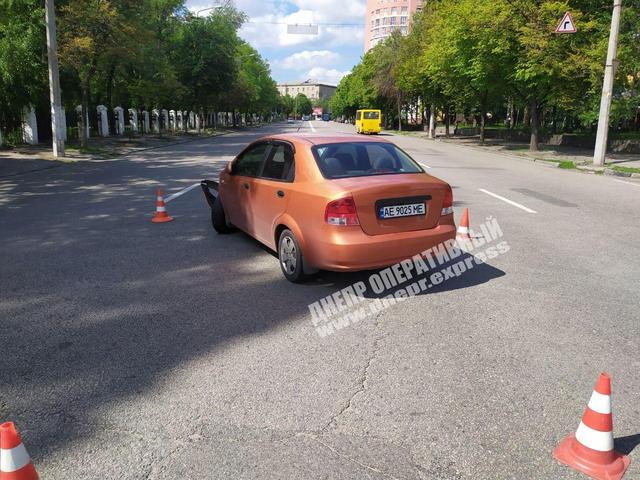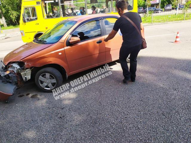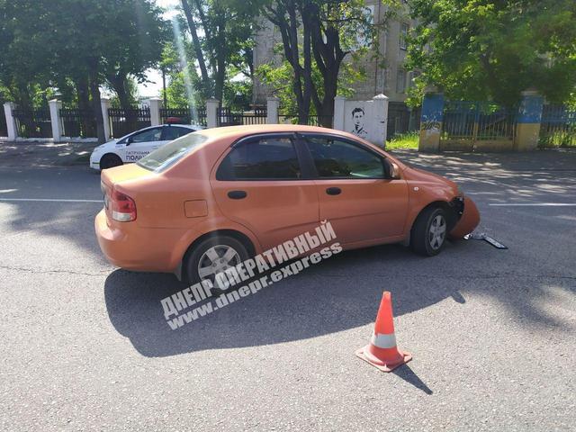 В Днепре на перекрестке пр. Гагарина и ул. Марии Кюри автомобиль Renault врезался в Chevrolet. Водитель Renault сбежал с места аварии, но его сразу же задержала полиция.