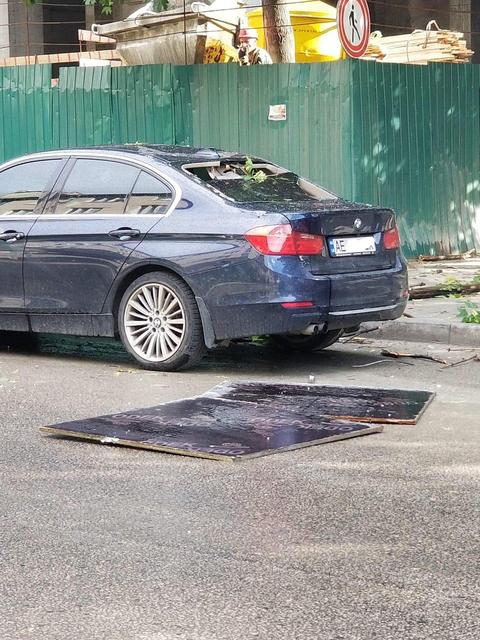 4 июня ГСЧС объявили штормовое предупреждение: людям рекомендовали не парковать автомобили под деревьями и шаткими конструкциями, и не гулять под балконами. Так, вечером 4 июня, на улице Херсонской, недалеко от «Днепр-арены», на припаркованные авто рухнули конструкции со стройки на месте бывшей гостиницы «Спорт».