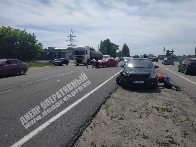 В Днепре на Донецком шоссе автомобиль Toyota врезался в Nissan, в результата чего оба автомобиля получили серьезные повреждения.