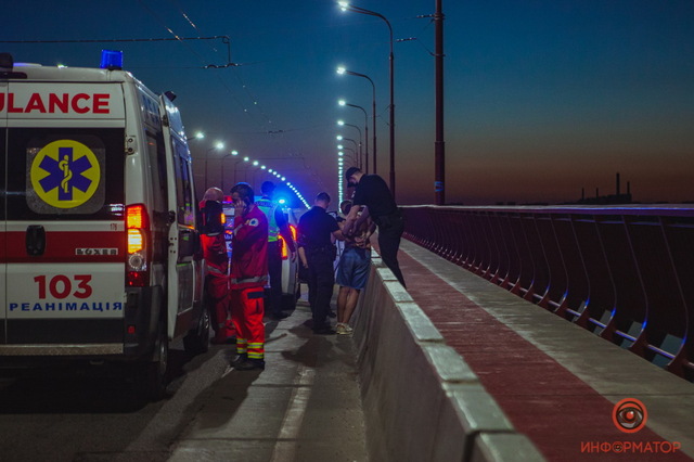 По предварительной информации, полураздетого человека, который ходит посреди проезжей части, сотрудники полиции увидели по камерам «Безпечного міста». Парень то бросался под колеса автомобилей, то садился на дорогу. В конце концов он перелез через перила, явно намереваясь прыгнуть вниз. В тот момент к месту уже «летели» наряд полиции и бригада скорой помощи. Ситуацию на воде контролировал водный патруль.