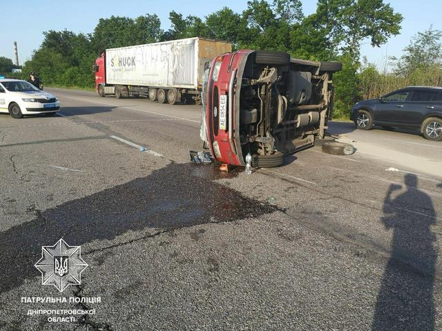 Авария произошла 9 июня на Криворожской трассе, недалеко от заправки ОККО. Водитель ВАЗ не убедился в безопасности маневра и столкнулся с микроавтобусом Ford. От сильного удара микроавтобус перевернулся на бок. Проезжавший мимо экипаж патрульной полиции, который ехал на пересменку, увидел произошедшее ДТП. Патрульные сразу остановились и вызвали скорую. До приезда следователя по ДТП патрульные осуществляли регулировку дорожного движения.