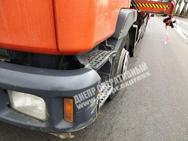 В Днепре на Амурском мосту грузовик MAN влетел в отбойник
