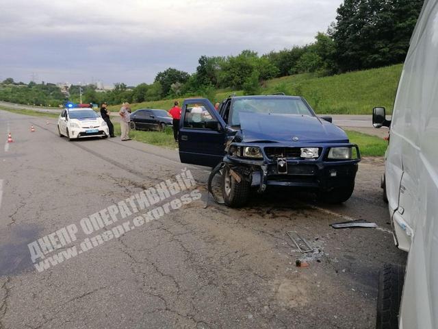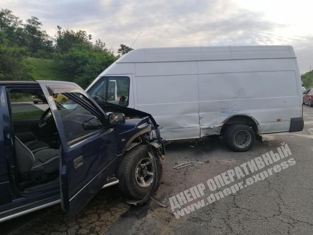 Недалеко от выезда из Днепра, на трассе, произошло ДТП: внедорожник Opel Frontera врезался в грузовой микроавтобус Ford Transit, пострадали двое пассажиров Opel.