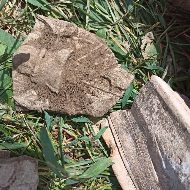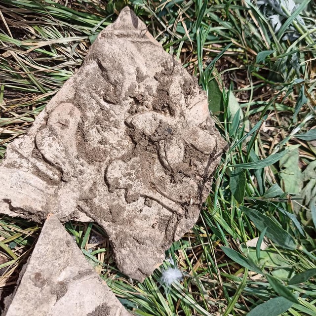 И вот эта тематическая линия нашла свое отражение в новых находках. На новой локации (не исследовавшейся год назад) буквально в первые дни раскопок удалось обнаружить целую серию печных изразцов тоже с очень интересными орнаментами.