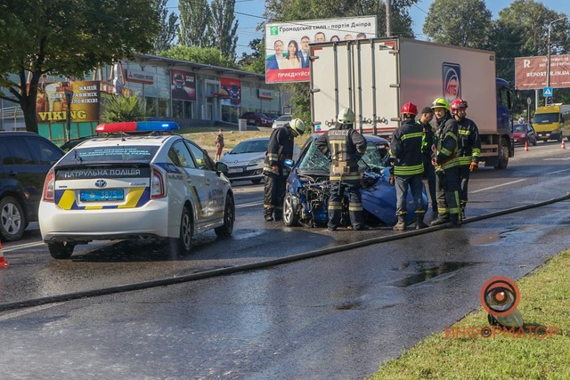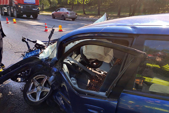 В Днепре на Космической лоб в лоб столкнулись BMW и Mazda: от удара один из водителей вылетел из машины
