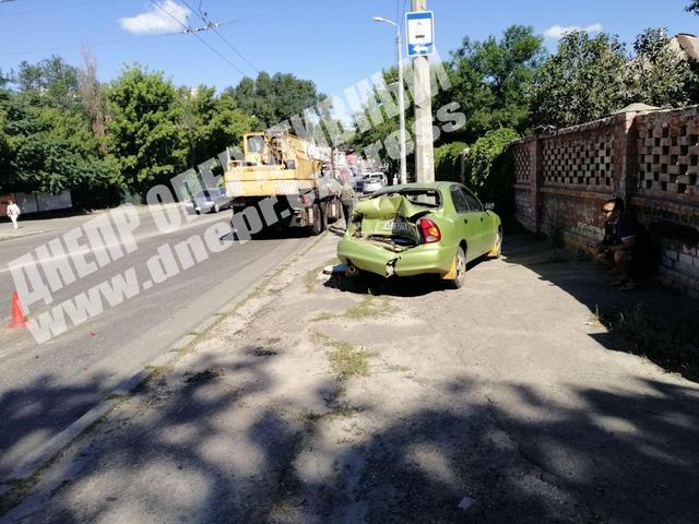 В Днепре сегодня, 9 июля, на перекрестке проспект Пушкина и улицы Канатная автокран врезался в припаркованный автомобиль Daewoo Lanos. В результате аварии пострадала девушка, которая находилась в салоне легкового автомобиля.