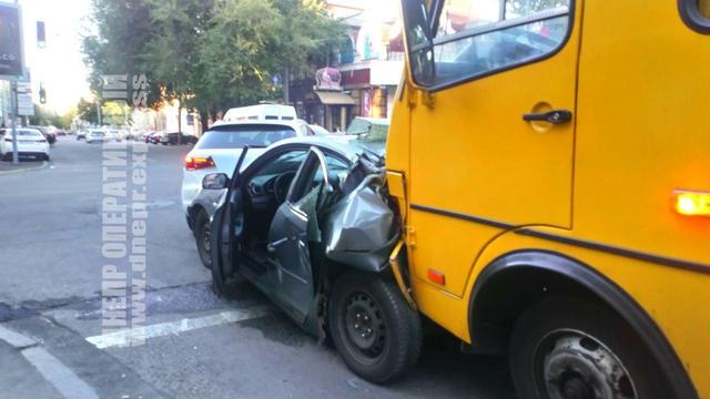 Автомобили Audi и Mazda стояли друг за другом на перекрестке Сечевых Стрельцов и Старокозацкой, в ожидании зеленого сигнала светофора. В этот момент сзади в автомобиль Mazda въехал автобус «Эталон», выполняющий маршрут №136. Легковушка от удара въехала в «зад» впереди стоящей Audi.