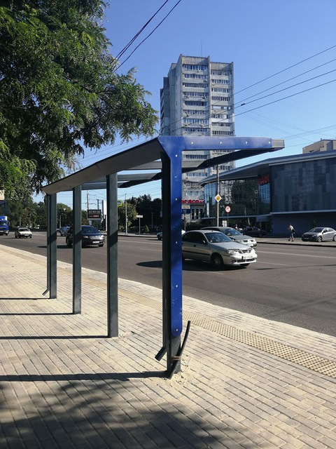 Сам навес не очень большой, зато места для посадки-высадки пассажиров достаточно, здесь одновременно смогут остановиться 2-3 больших автобуса или троллейбуса. Так как этот транспортный узел очень насыщен, то и остановка здесь должна обладать большой пропускной способностью.