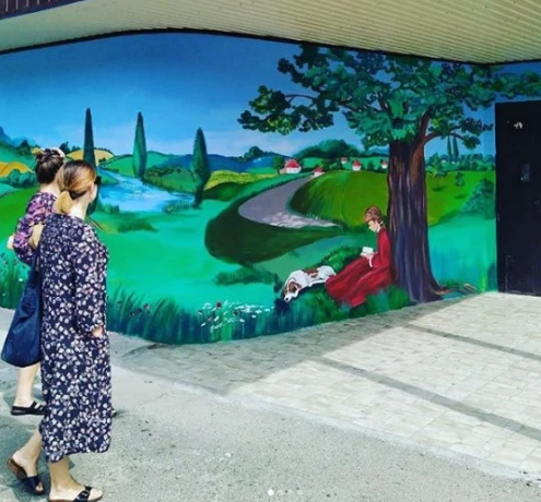 Несколько лет назад Виктория загорелась идей превратить серые гаражи в сказочную галерею. Однако, спустя время первоначальная задумка трансформировалась в создание картин у подъездов. Теперь девушка занимается творчеством вместе с сестрой Елизаветой.
