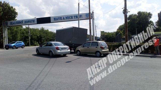 В Днепре сегодня на перекрестке улицы Паникахи и Запорожского шоссе произошло дорожно-транспортное происшествие – автомобиль Daewoo Matiz врезался в Газель.