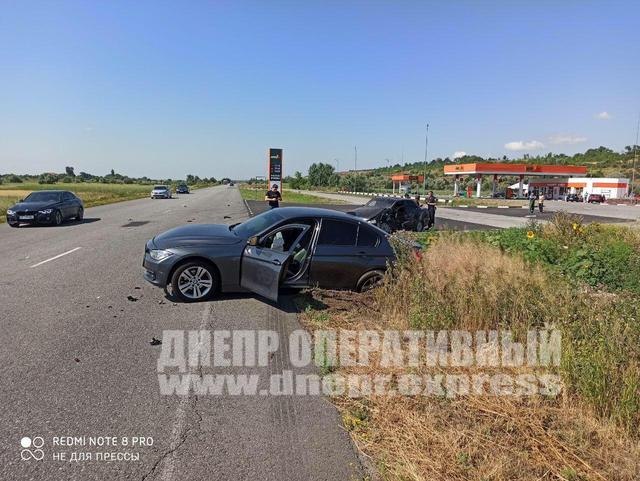 Под Днепром на трассе М-29 автомобиль Lada Priora врезался в BMW. Водитель автомобиля Lada получил серьезные травмы – его госпитализировали.