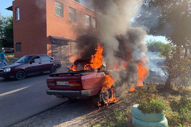 По прибытию спасателей к месту вызова установлено, что пожар возник в легковом автомобиле «ВАЗ 2107», который находился на временной остановке.