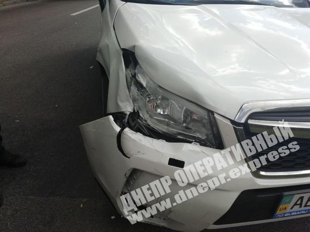 В Днепре сегодня на проспекте Гагарина произошло ДТП – автомобиль Lada врезался в Subaru Forester.