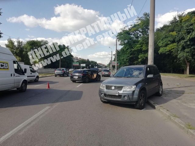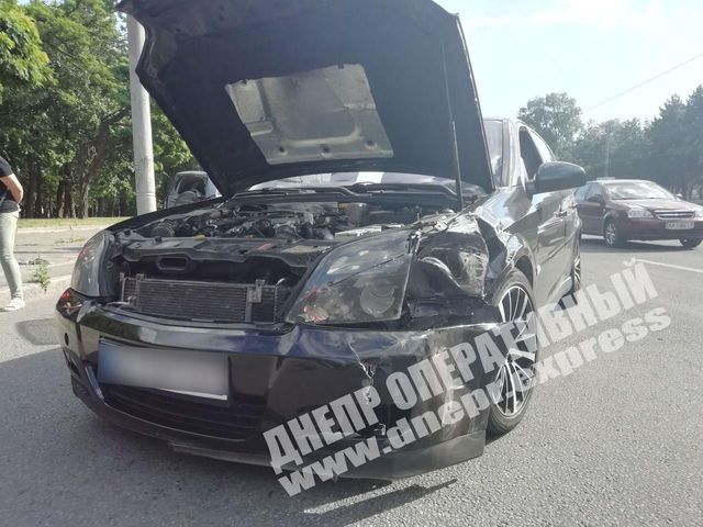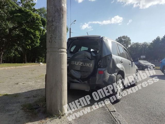 В Днепре сегодня на перекрестке проспекта Богдана Хмельницкого и Запорожского шоссе автомобиль Opel врезался в Suzuki. От сильного удара автомобиль Suzuki откинуло в столб.