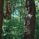 Прохладный августовский день как нельзя лучше подходил для прогулки по сосновому лесу. Лес же привел путников к поляне с выстроенными по кругу истуканами, оглядывающими просторы заказника. Чуть поодаль ждала еще одна мистическая локация — на земле был вырыт ров, его обнесли забором, сделанным вручную, на входе и по центру круга тлели костры, а с ворот свисали кости…
