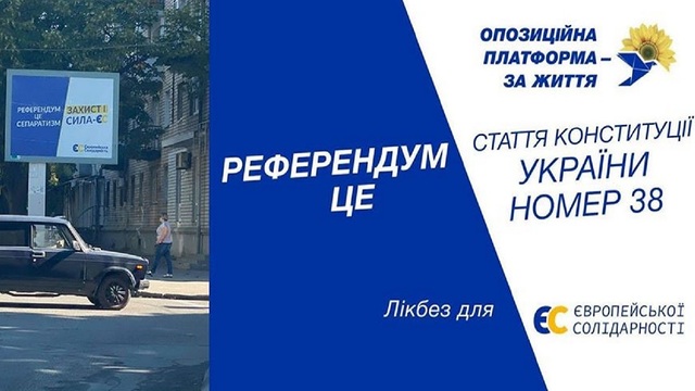 В Днепре, на своих страницах в Фейсбук представители «ОППОЗИЦИОННОЙ ПЛАТФОРМЫ – ЗА ЖИЗНЬ» разместили посты, в которых обозначили свое отношение к бордам Европейской Солидарности «Референдум – це сепаратизм».