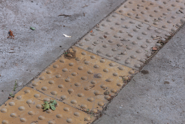 Тактильное покрытие представляет собой систему текстурированного индикатора поверхности земли, расположенного на тротуарах, пешеходных переходах, лестницах, платформах железнодорожных станций и остановочных пунктов, для помощи ориентации в пространстве слабовидящим пешеходам.