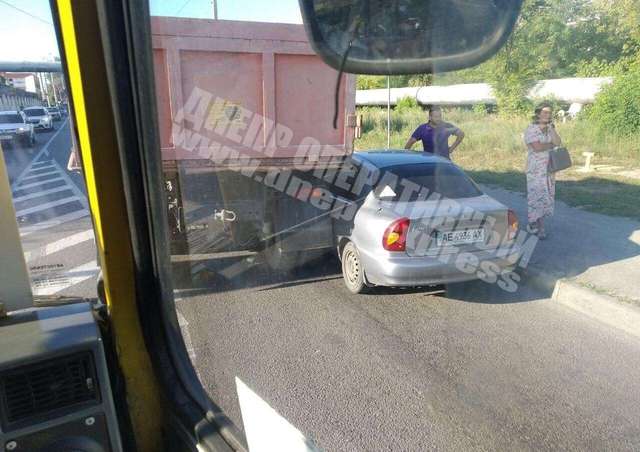 В Днепре произошло ДТП с участие двух автомобилей - Daewoo Lanos и КАМАЗ.