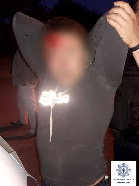Оновлено b>. Як повідомили в патрульній поліції Кривого Рогу, чоловік погрожував підірвати міст через зраду жени. Чоловік повідомив, що має автомат Калашникова, РПГ (ручний протитанковий гранатомет), 5 гранат, 2 пачки патронів, 2 шашки, 5 динамітів. Коли правоохоронці прибули на місце, чоловік з сокирою в руках почав бігти за службовим автомобілем з погрозами. Коли криворіжець почув про те, що його затримають, то забіг до будинку, а через деякий час вистрибнув з вікна і втік до річки.