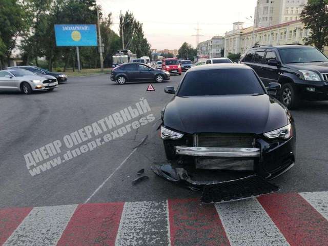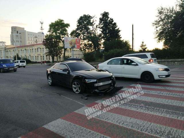В Днепре легковой автомобиль Audi врезался в автомобиль Volvo, который остановился, чтобы пропустить пешехода.
