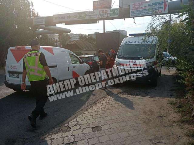 В Днепре произошло ДТП с участием автомобилей Renault Dokker (Новая почта), Ford Fiesta и фургона MAN.