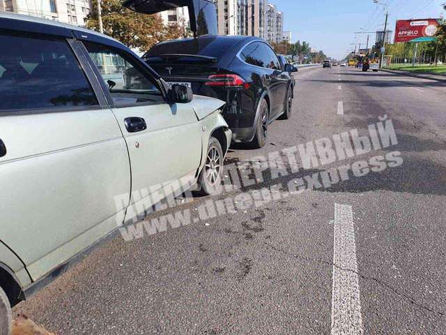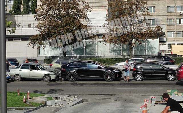 В Днепре сегодня, 26 августа, произошло тройное ДТП с участием ВАЗ, Tesla и Hyundai Getz. Инцидент произошел на улице Набережная Победы, 37Б. Tesla стоимостью 120 тысяч долларов стояла возле тротуара. В этот момент в иномарку влетел «ВАЗ 2110», из-за чего Tesla ударила Hyundai.