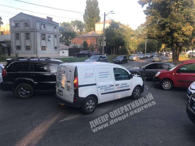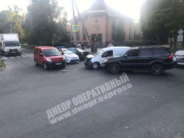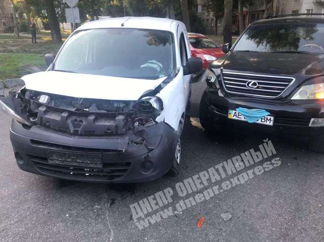 В Днепре на перекрестке произошло ДТП с участием внедорожника Lexus и двух автомобилей Renault Kangoo.