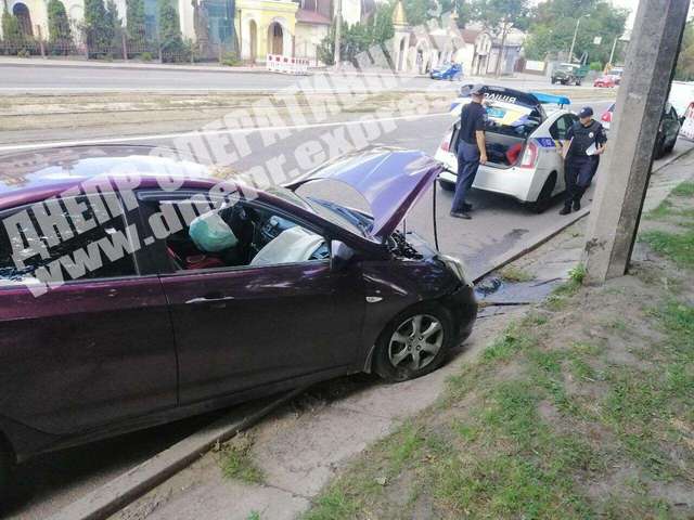 В Днепре на проспекте Ивана Мазепы легковой автомобиль Hyundai Accent врезался в столб.