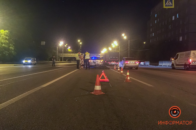 Инцидент произошел около 20:05. Как рассказали полицейские, оба транспортных средства ехали по Слобожанскому проспекту в сторону центра. На пешеходном переходе водитель машины остановился, чтобы пропустить людей. Мужчина на мотоцикле не успел сориентироваться и врезался в заднюю часть авто. В результате: у него перелом плеча и травма головы.