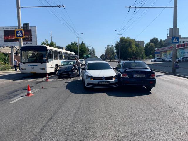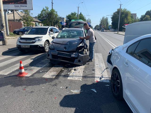 В Днепре на Калиновой — тройное ДТП (момент ДТП)