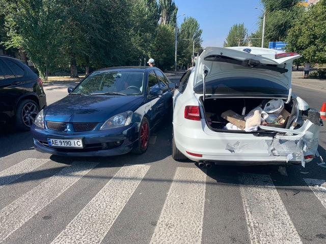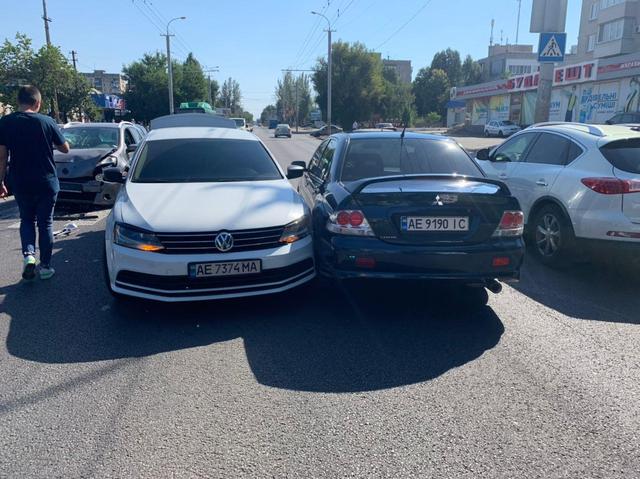 В Днепре на улице Калиновая сегодня, 11 сентября, произошла авария с участием трех автомобилей: Volkswagen, Renault и Mitsubishi.