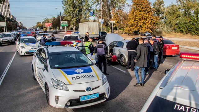 В Днепре мужчина устроил погоню с полицией, угрожал баллончиком и толкнул патрульного в служебном авто