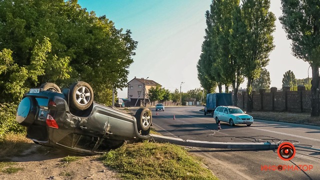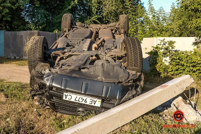 21 сентября, около 7:40, на улице Криворожской автомобиль Toyota снес столб и перевернулся «на спину». В инциденте пострадала девушка-водитель.
