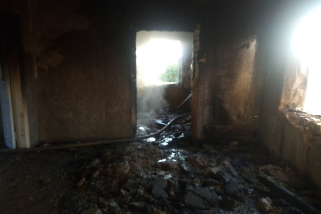По прибытию спасателей на место происшествия установлено, что пожар возник внутри помещения заброшенного одноэтажного жилого дома расположенного на территории частного домовладения. Огнем уничтожены вещи домашнего обихода, мусор и внутренняя облицовка стен на площади 80 м.кв. Повреждено деревянное перекрытие дома на общей площади 30 метров. кв.