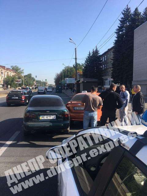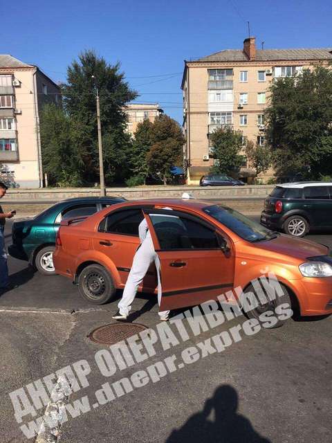 В Днепре на проспекте Богдана Хмельницкого произошло ДТП с участием двух легковых автомобилей: Chevroletи Aveo и Daewoo Lanos.