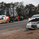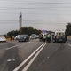 Из-за аварии заняты крайние левые полосы в обоих направлениях. За ситуацией на дороге следят патрульные полицейские.