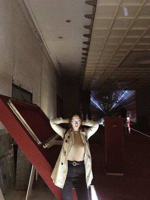 В кінці довгого червоного залу, на величезній стіні демонструється зациклене відео з дніпровського метрополітену. Відчуваєш себе трошки космонавткою чи героїнею фільму Тарковського. Щось неймовірне».