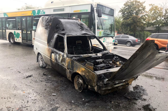 В Днепре на Слобожанском проспекте сегодня, 30 сентября, загорелся автомобиль ЗАЗ.