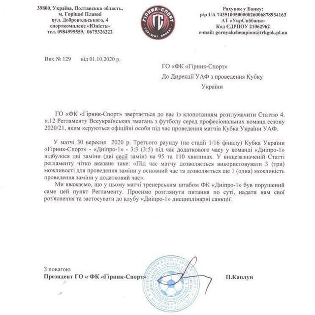 Данную разбежность в толковании правил и регламента и просит пояснить "Горняк-Спорт", который направил официальном обращении к УАФ.