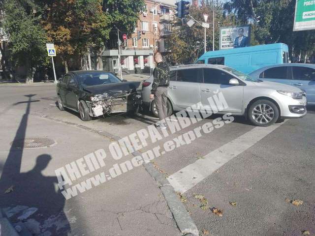 В Днепре на проспекте Александра Поля сегодня, 5 сентября, около 08:00 произошла авария с участием двух легковых автомобилей: Renault Megan и Mitsubishi Lancer.